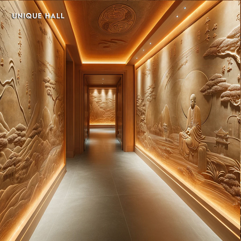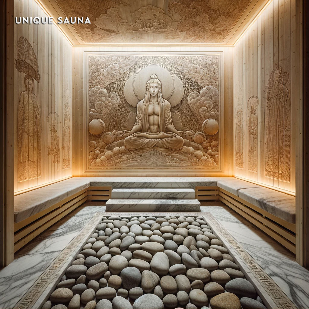 As I enter the temple, a serene elegance engulfs me. From the reception to the hallway, the hero's journey etched on walls reminds me: the destination is the journey. I transition through purifying showers, river rocks underfoot grounding me, to the sauna's, to warm sanctuary, where i sit, as the walls echo the call to adventure. I find solace in the lounge.