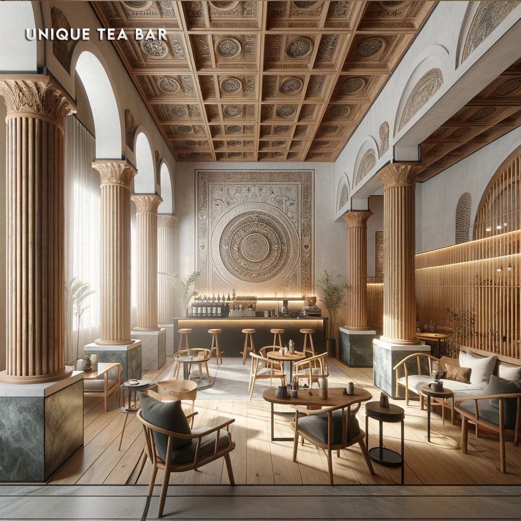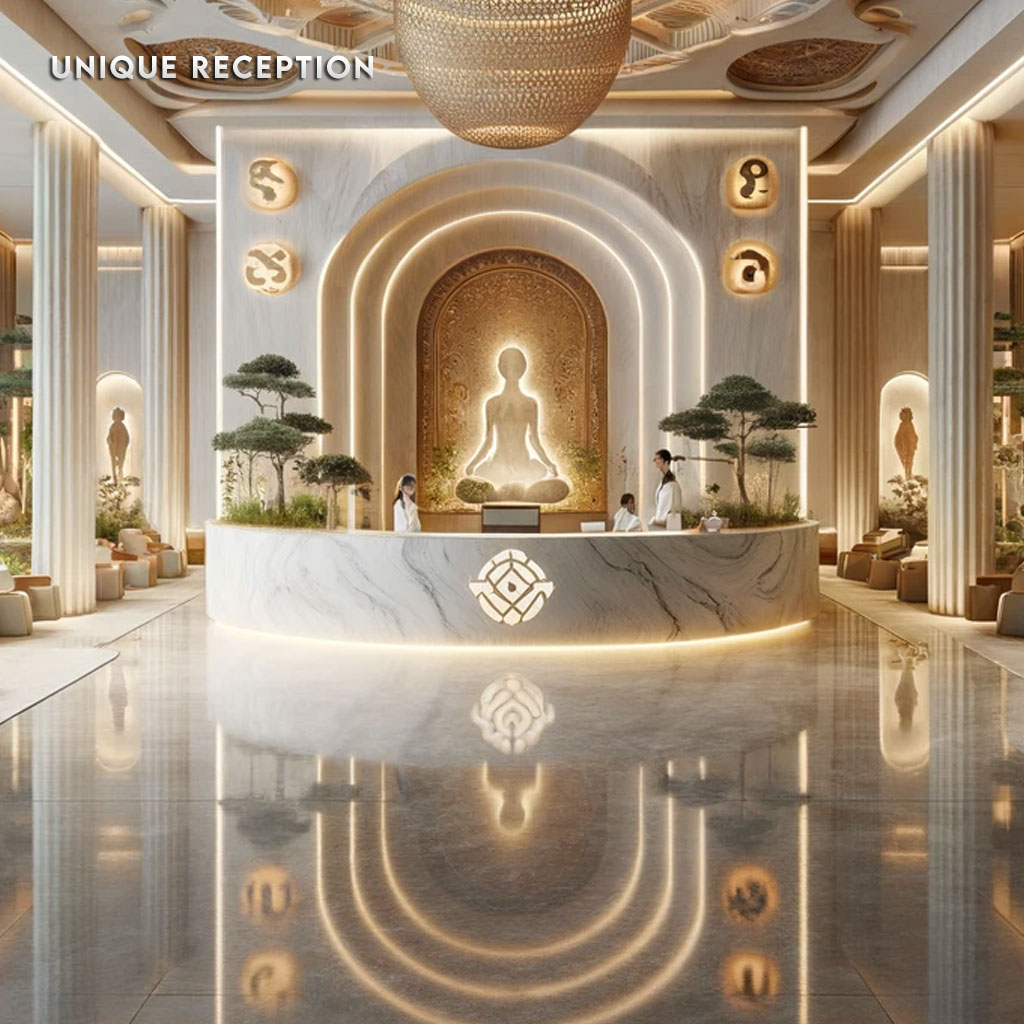 The store equipes you for a journey of self discovery, marrying function with elegance. The Walls are adorned with the temple's spiritual ethos. The Co-working space is quiet, a space designed not just for work, but for the cultivation of the mind and spirit.The quiet coworking nurtures clarity and creativity. And in the library, the tea bar steeps you in Uni-Que's singular magic.